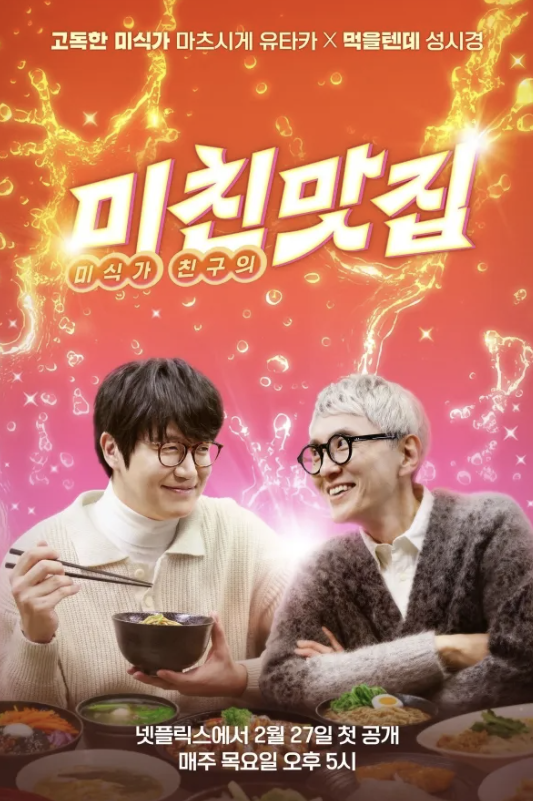 '미친 맛집: 미식가 친구의 맛집'에는 한국의 미식가 성시경과 일본의 배우 마츠시게 유타카가 출연합니다.